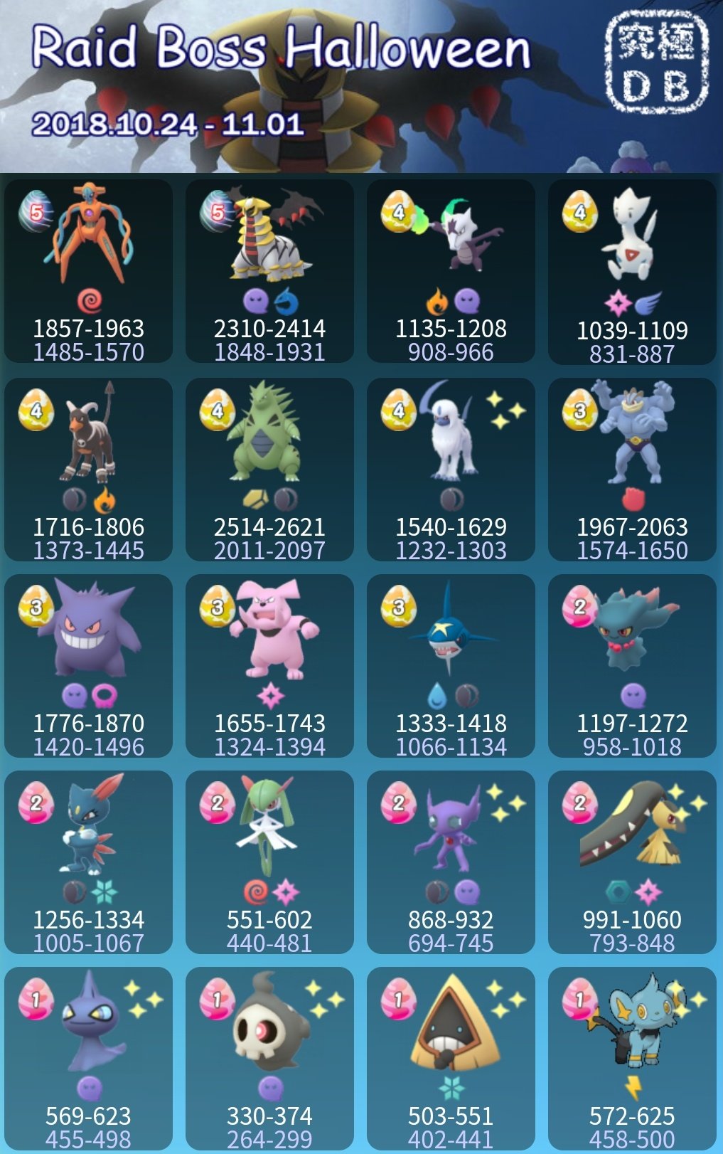 Twitter 上的 ポケモンgo攻略 みんポケ ハロウィンイベントボス一覧 Lv5にギラティナが登場 あく ゴーストタイプが追加 ボスゴドラや アローラライチュウなどが削除 第4世代はコリンク以外削除 最新レイドボス一覧 T Co Virwwaqj2v ポケモンgo
